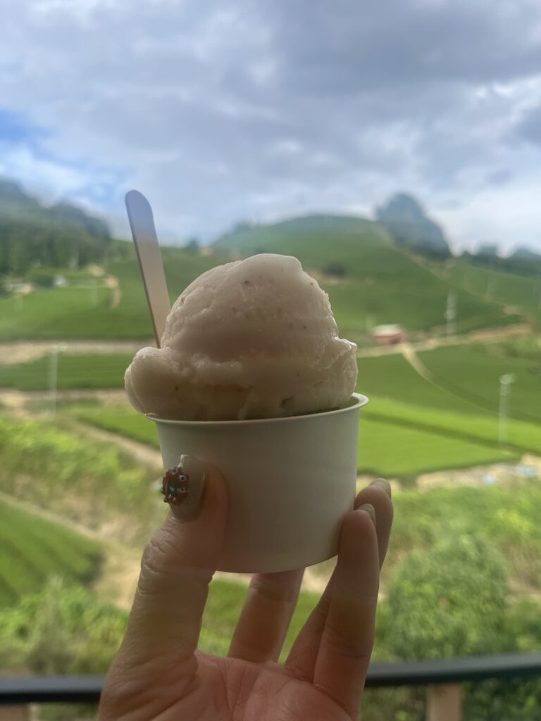 この日は、少し天気が曇り空でしたが絶景茶畑を見ながらスイーツを食べれるお店です🍧